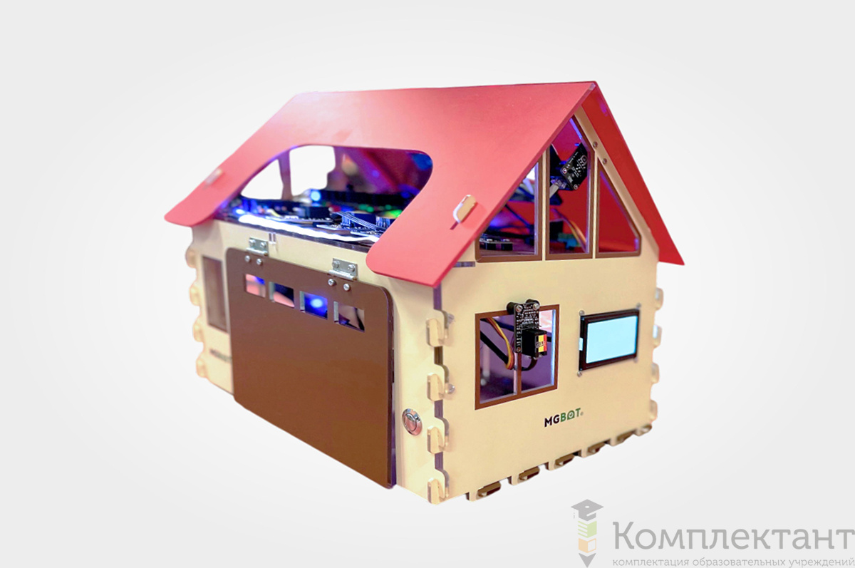 Образовательный набор «Умный дом» М3 ЙоТик 32 представляет собой макет реального помещения, работа с которым позволит изучить концепт «умного дома» и разобрать ситуационные задачи с применением технологии «Интернет вещей» (IoT).