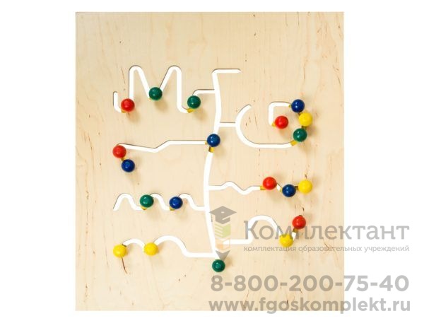 Изделие представляет собой панель, в которой расположен лабиринт – сквозные прорези в виде волн, зигзагов. На панели размещены фигурки, которые нужно двигать по лабиринту.