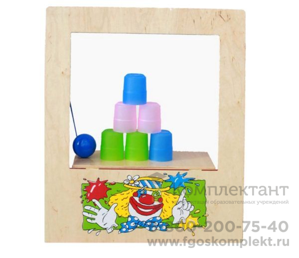 Цель игры – на полку положить стаканчики, которые нужно сбить мячиком.