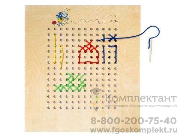 Игровая панель «Вышивание» – это уникальная обучающая игрушка, которая развивает мелкую моторику, внимание и творческое мышление у детей. Панель представляет собой деревянную основу с отверстиями для шнуровки и цветными шнурками, которые нужно продеть в соответствии с рисунком. Отличное решение для детского сада или начальной школы!
