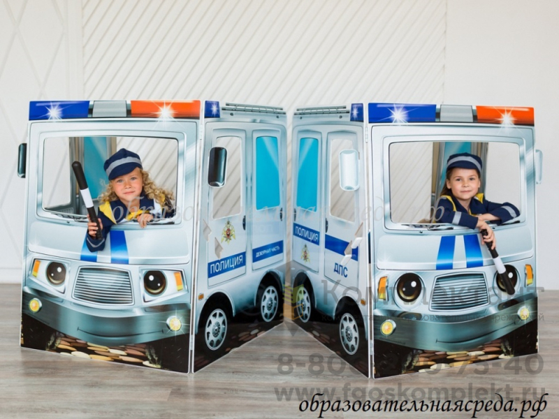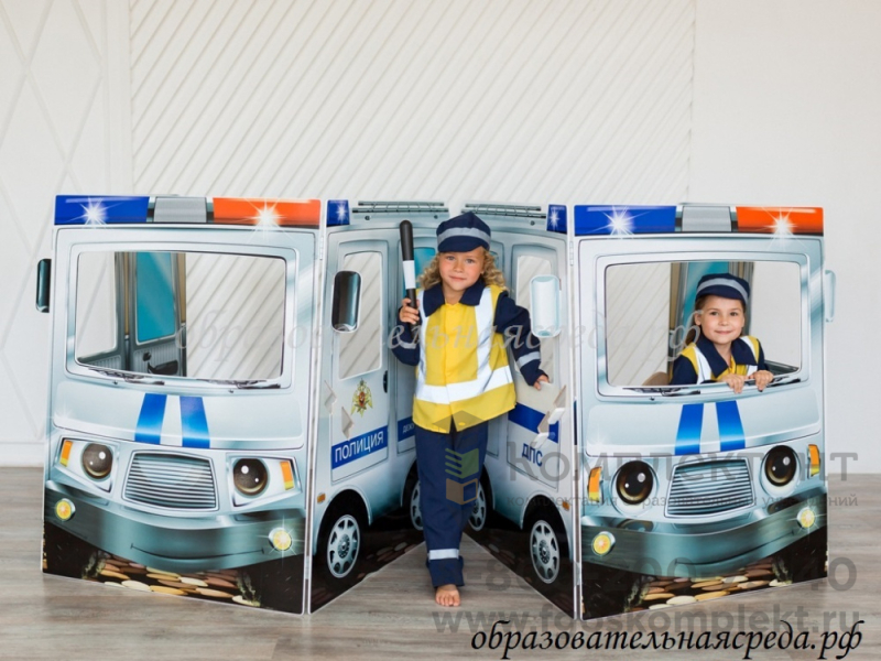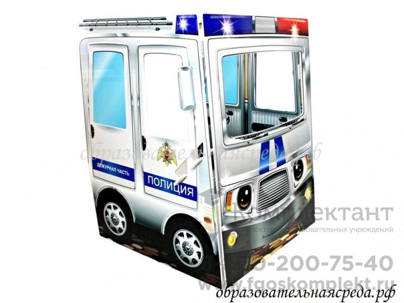 Игровой модуль "Полицейский автомобиль" выполнен из МДФ с нанесением полноцветного рисунка и ламинацией снаружи и внутри изделия.