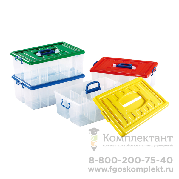 3 пластиковых контейнера с крышкой и ручкой, и дополнительными ручками-защелками.