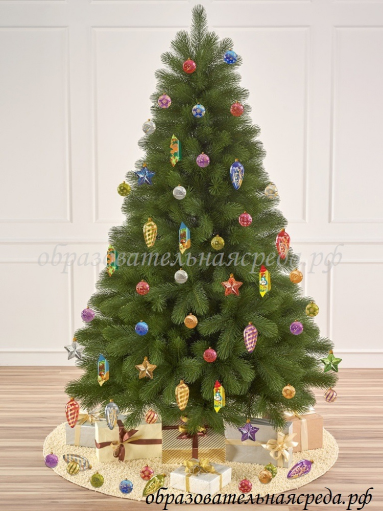 Комплект плоскостных ёлочных игрушек выполнен из ПВХ 4мм с нанесением яркого изображения ёлочной игрушки с двух сторон. В комплект входит леска для крепления игрушки на ёлку. Так же ёлочными игрушками нашего производства можно украсить окна, занавески и мебель в группе или музыкальном зале. В набор входит: 20 шаров, 10 шишек, 10 звезд, 10 конфет. Всего 50 шт.