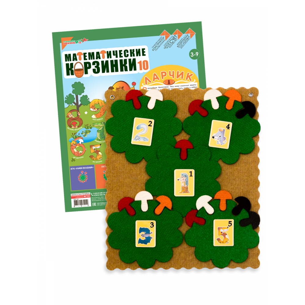 «Математические корзинки 5», «Математические корзинки 10», «Математические корзинки 100. Ларчик» (ковролин).