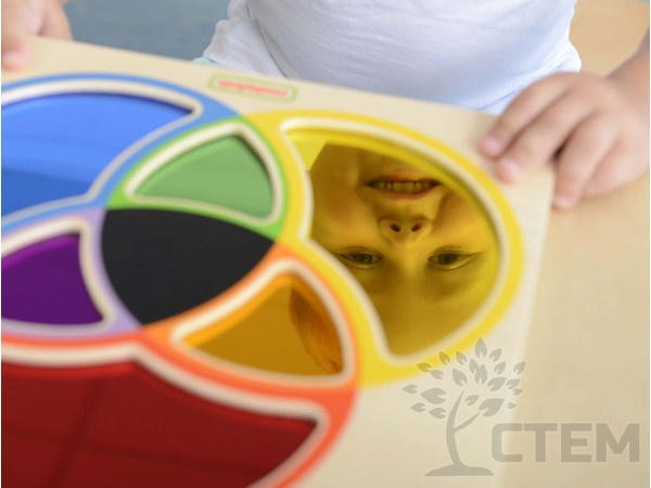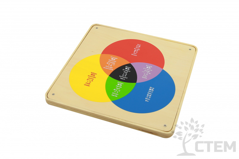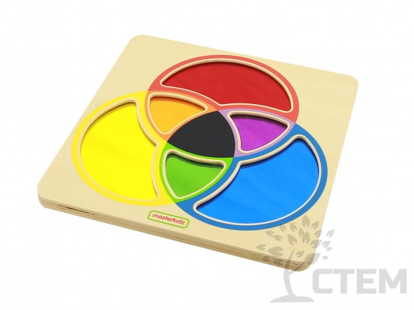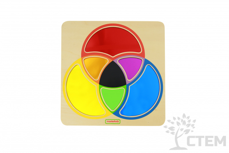 Панель-мозаика с 3-х цветными кругами предназначена для знакомства и изучения цветов, а также наглядно дает представление об эффекте смешивания цветов.