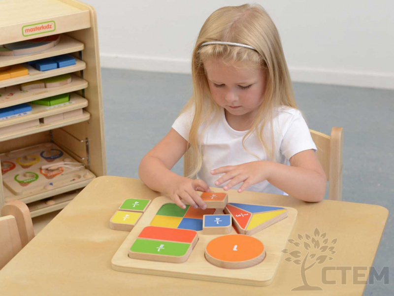 Панель "Геометрические фигуры: доли" – это интерактивное учебное пособие для изучения дробей в игровой форме. Идеально подходит для детей от 6 лет, помогает наглядно понять отношения между частями целого через красочные иллюстрации и тактильные элементы.