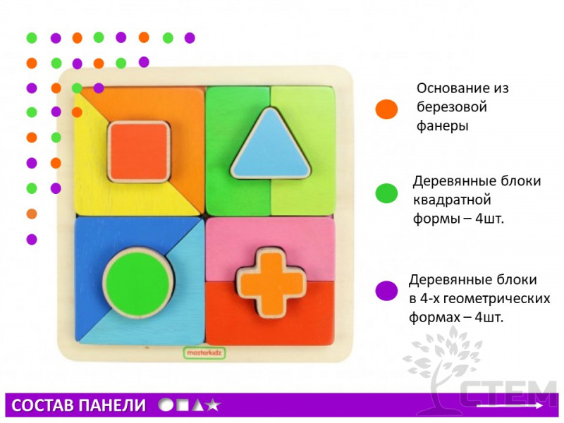 Панель "Геометрические формы - мозаика" – это интерактивное учебное пособие для развития логического мышления у детей. Идеально подходит для занятий в детских садах и начальной школе.