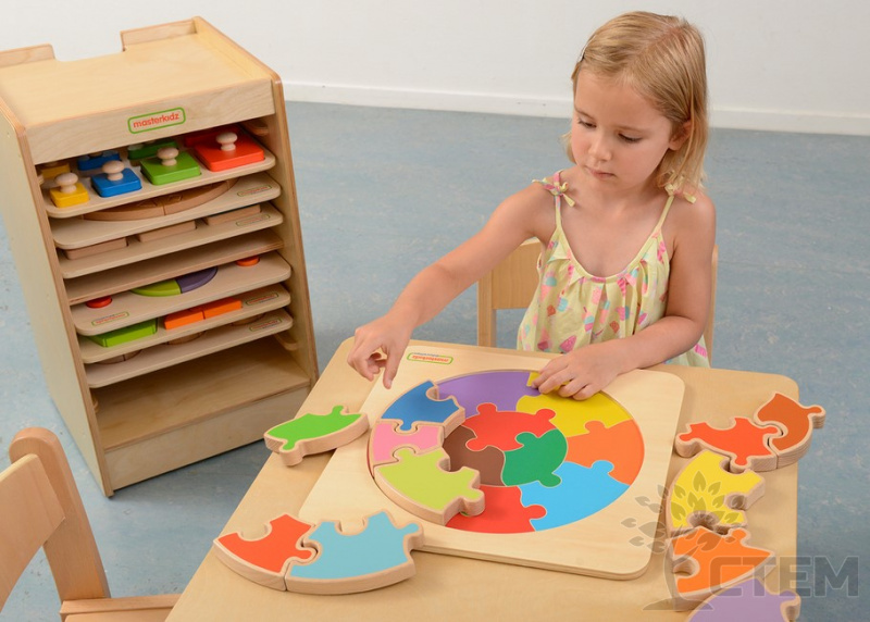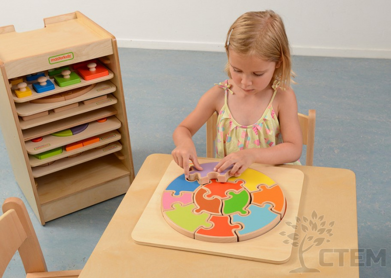 Панель состоит из цветных элементов (пазлов), которые в собранном виде представляют круг.
