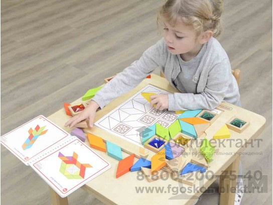 Знакомит детей с цветом, различными формами и изометрией (построение плоской фигуры).