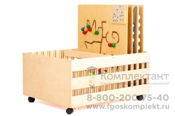 Изделие представляет собой мобильную стойку для игровых панелей, которая расположена на 4 колесиках. Стойка включает в себя индивидуальные места для установки и хранения 12 панелей из комплекта.