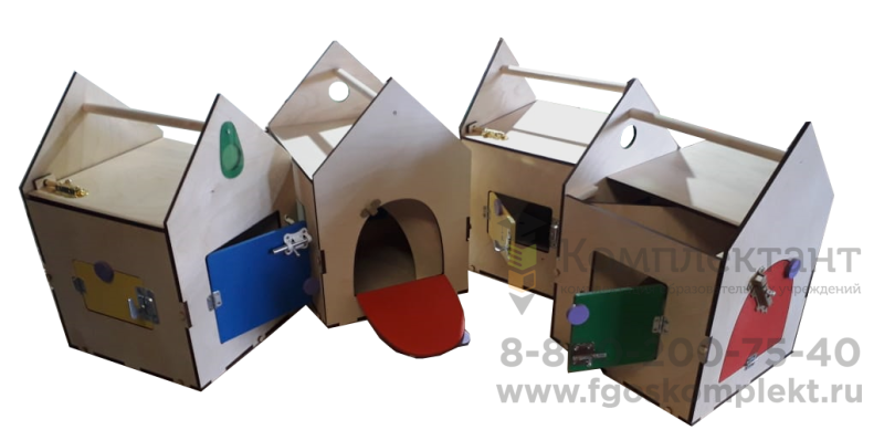 Домик с дверцами и замочками способствует развитию мелкой моторики, тактильных ощущений и осязательных навыков. Также такой домик помогает ребёнку научиться открывать и закрывать дверцы, пользоваться различными замочками.