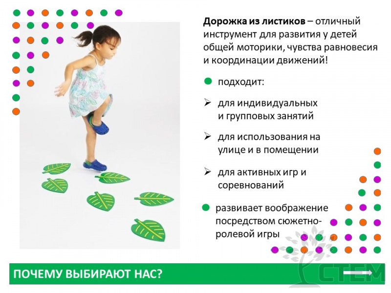 Дорожка представляет собой отличный инструмент для развития моторики, координации, а так же привносит