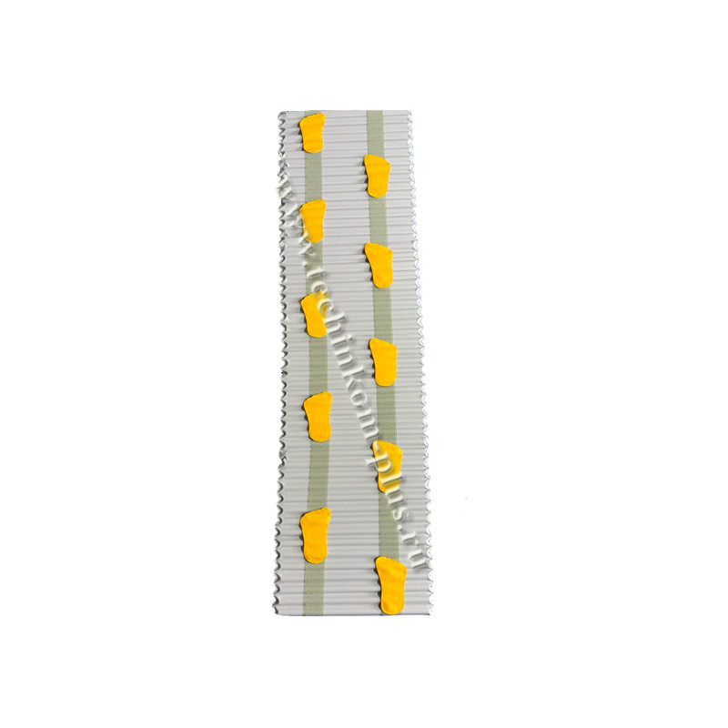 Дорожка ребристая "Гофр" изготовленаиз винилискожи (искусственной кожи) и пластмассовых палочек-трубдиаметром 2 см. На одну сторону дорожки пришита липучка для фиксирования следочков вразных положениях: носочком внутрь-наружу, на одной или 2 полосах.
