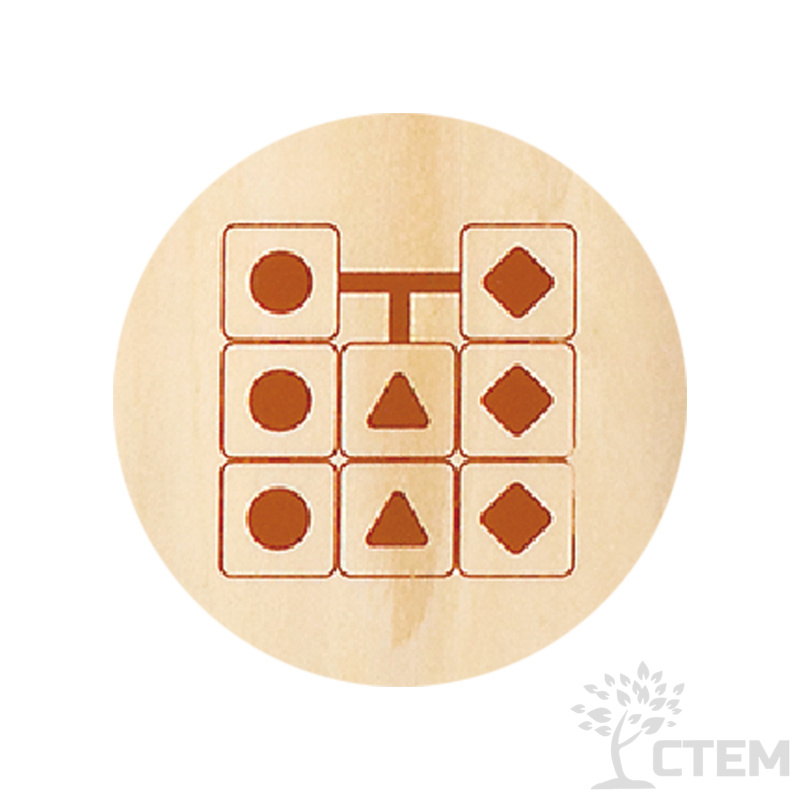 На каждом квадрате размещена объемная геометрическая фигура в виде треугольника, квадрата и круга, которая также используется как ручка, для перемещения элементов.