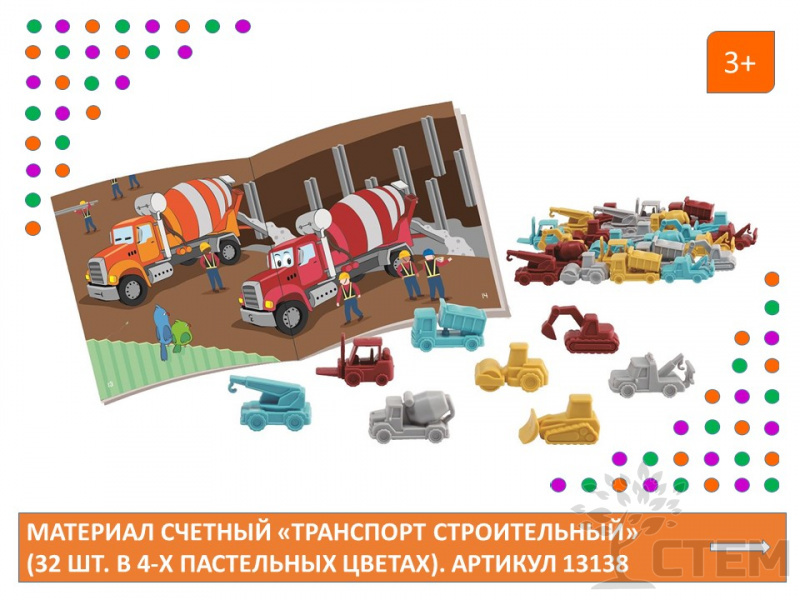 Материал счетный "Транспорт строительный" (32 шт. в 4-х пастельных цветах)
