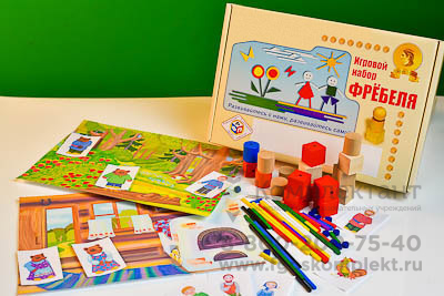Набор разработан в соответствии с педагогическими принципами Фребель-педагогики и представляет собой специально составленные комплекты из элементов «Даров Фребеля» с авторскими иллюстрациями по мотивам сказок русских писателей. Карточки изготовлены из мелованной бумаги, ламинированной пленкой. Печать полноцветная. Элементы для игры изготовлены из дерева и пластика и упакованы в зип-пакеты.