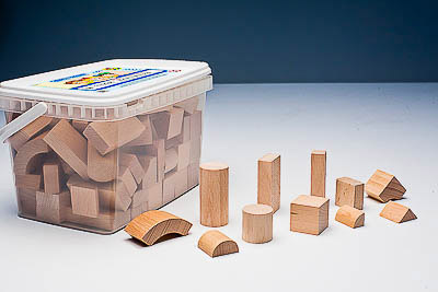 Комплектность: кубики (25*25*25 мм) – 19 шт., цилиндры большие (диаметр 25 мм, высота 50 мм) – 4 шт., цилиндры малые (диаметр 25 мм, высота 25 мм) – 4 шт., параллелепипеды-кирпичики (50*25*12,5 мм) – 16 шт., параллелепипеды-столбики (50*12,5*12,5 мм) – 10 шт., параллелепипеды-полукирпичики (25*25*12,5 мм) – 12 шт., арка большая диаметром 48 мм – 4 шт., арка малая диаметром 24 мм – 4 шт., полуцилиндр диаметром 24 мм – 4 шт., четверть цилиндра (диаметр 24 мм, высота 25 мм) – 4 шт., кубик (25*25*25 мм) с вырезом под четверть цилиндра – 8 шт., призма треугольная большая (35*25*25 мм) – 10 шт., призма треугольная малая (25*17*17 мм) – 12 шт., карточки – 8 шт., руководство по эксплуатации – 1 шт.