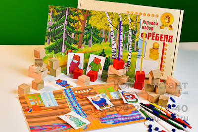 Набор разработан в соответствии с педагогическими принципами Фребель-педагогики и представляет собой специально составленные комплекты из элементов «Даров Фребеля» с авторскими иллюстрациями по мотивам сказок русских писателей. Карточки изготовлены из мелованной бумаги, ламинированной пленкой. Печать полноцветная. Элементы для игры изготовлены из дерева и пластика и упакованы в зип-пакеты.