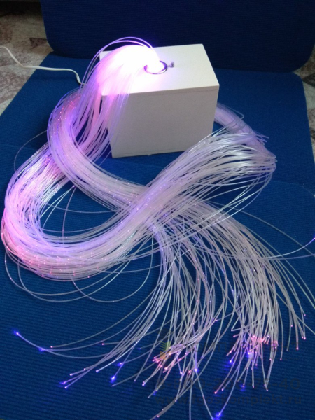Изделие представляет собой пучок фиброоптических волокон в безопасной оболочке с боковыми насечками. Нужно просто в удобном месте закрепить источник света: на полу, рядом с мягким сиденьем и т.д.