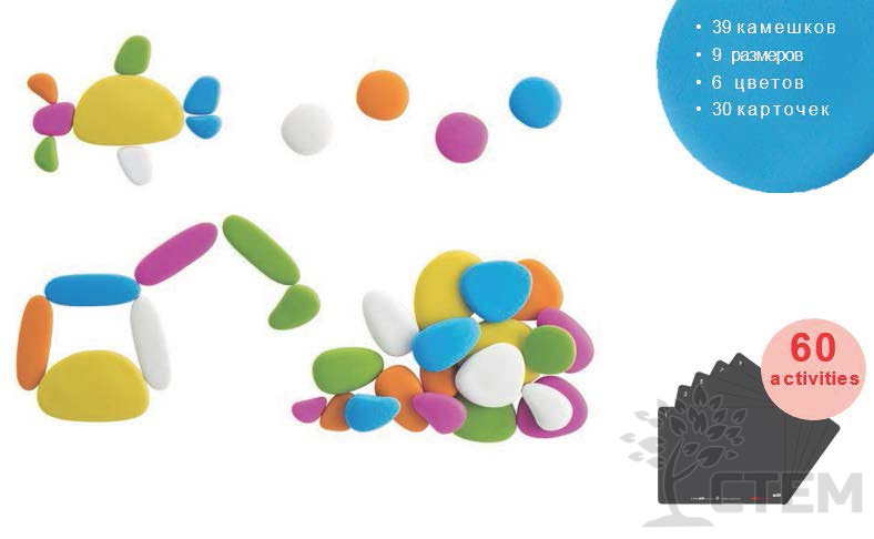 Радужные камешки "Флюро" 9 формы, 6 цветов, 39 шт. Набор с карточками