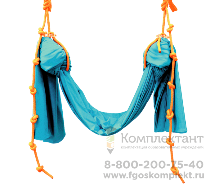Предложите ребёнку находясь в гамаке поперёк принять одну из гимнастических фигур, таких как: березка/свечка, мостик и пр.