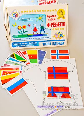 Игровой набор разработан в соответствии с педагогическими принципами Фребель-педагогики и представляет собой специально составленные комплекты из элементов «Даров Фребеля» с авторскими играми. Карточки для игры изготовлены из мелованной бумаги, ламинированной пленкой. Печать полноцветная. Элементы для игры изготовлены из дерева и упакованы в зип-пакеты.