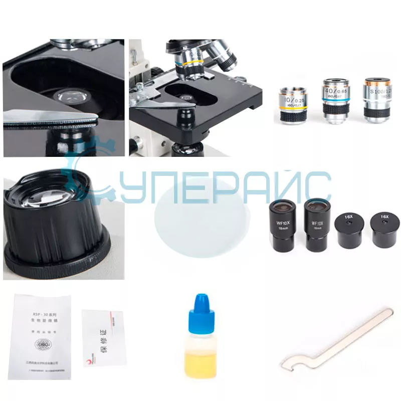 объектив 10x – 1 шт объектив 40x – 1 шт объектив 100x – 1 шт окуляр WF10x – 1 шт окуляр H16x – 1 шт часовое стекло – 1 шт металлический ключ – 1 шт иммерсионное масло (кедровое) – 1 шт семидюймовый дисплей – 1 шт инструкция по эксплуатации – 1 шт | |