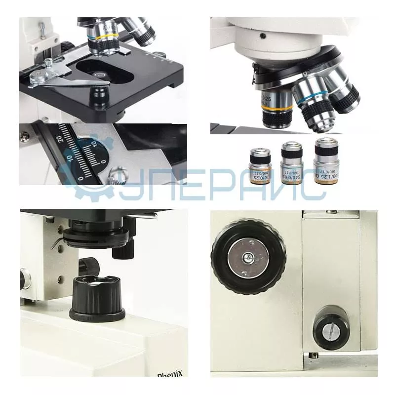 Микроскоп Phenix XSP-35TV может быть использован в различных областях медицины, в биологии, ботанике, химии и не только, ведь это отличный оптический прибор с увеличением до 1600 крат. Он оснащен столиком с координатным перемещением, обладает совмещенными винтами грубой и тонкой фокусировки, а также широкопольными окулярами.