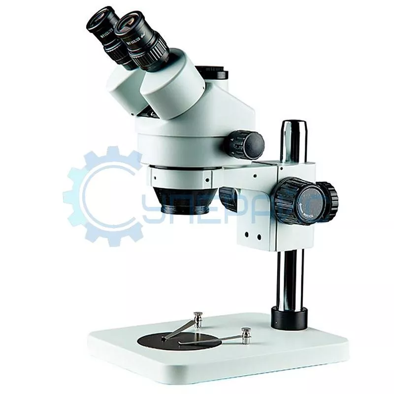 Главное преимущество микроскопа — наличие препаратодержателя, который упрощает работу с образцами, обеспечивая их надёжную фиксацию. Тринокулярная насадка открывает возможность подключения цифровых камер для фото- и видеозаписи, что делает прибор универсальным инструментом для документирования исследований. Линза оптического микроскопа имеет непрерывное увеличение (7–45 крат) и широкое поле зрения, что позволяет работать с объектами разного масштаба и уровня сложности.
