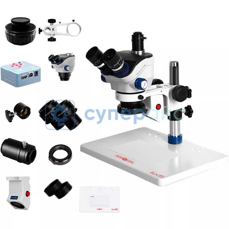 Тринокулярный цифровой микроскоп Kaisi TX-350E Ver1.2 с дымоуловителем