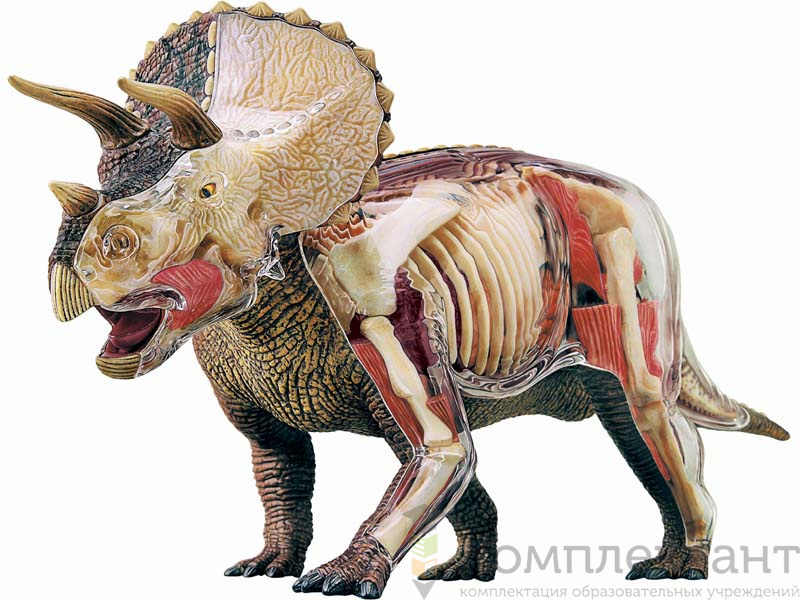 Анатомическая модель 4D Vision «Трицератопс» (Deluxe) — это современный образовательный инструмент для глубокого изучения палеонтологии и анатомии доисторических рептилий. Модель обеспечивает высочайшую научную точность воспроизведения внутреннего и внешнего строения одного из самых узнаваемых растительноядных динозавров. Данное учебное пособие предназначено для оснащения кабинетов биологии, предоставляя уникальную возможность детально изучить анатомические особенности трицератопса.