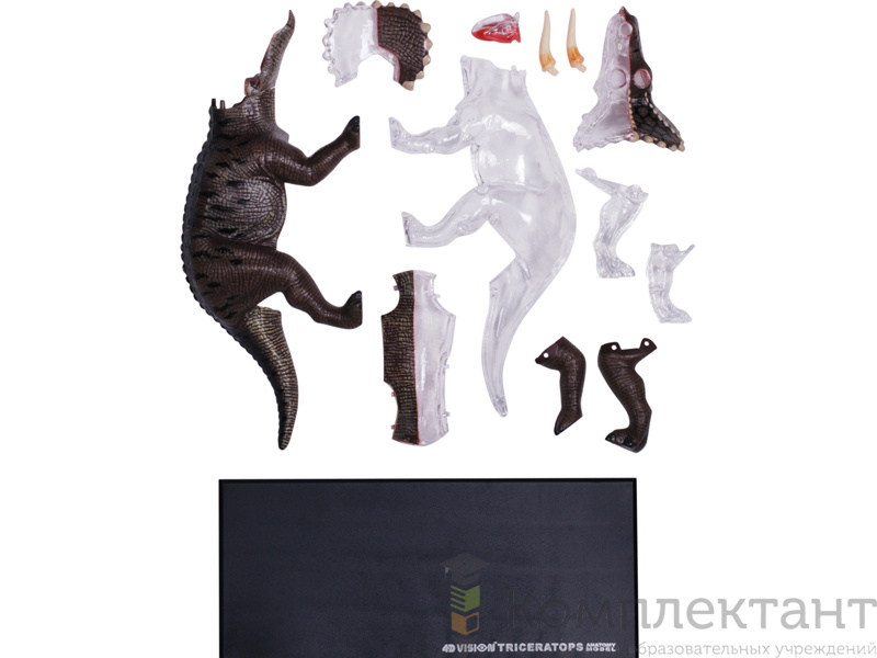 Анатомическая модель 4D Vision «Трицератопс» — это современный образовательный инструмент, который позволяет заглянуть в прошлое и детально изучить строение одного из самых узнаваемых динозавров. Данная модель, состоящая из 46 деталей для сборки, сочетает в себе высокую научную точность и интерактивный формат, что делает ее незаменимым наглядным пособием для оснащения кабинетов биологии и естествознания. Она предоставляет уникальную возможность не просто увидеть, но и самостоятельно исследовать анатомию доисторического ящера, вызывая живой интерес к палеонтологии и биологии.