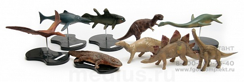 Набор моделей используется для демонстрации ископаемых животных на уроках биологии в общеобразовательных школах при изучении эволюции животного мира в разделах «Животные», «Общая биология». В набор входят 9 моделей ископаемых животных: латимерия, стегоцефал (ихтиостега), плезиозавр, ихтиозавр (шонизавр), игуанодон, брахиозавр, птеродактиль, стегозавр, тираннозавр-рекс. При изучении эволюции животного мира особое значение имеют переходные формы. Такими переходными формами являются латимерия и стегоцефал.