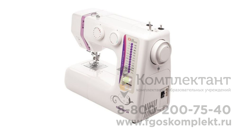 Универсальная электромеханическая швейная машина Comfort 24 в оригинальном дизайне, представляет собой современную модель, продолжающую ряд практичного и недорогого оборудования от российского производителя. Конструкция оснащена вертикальным качающимся челноком, с которым максимальная скорость шитья достигает 400 стежков в минуту и усовершенствованным мощным двигателем, что в совокупности позволит без труда прошивать материалы любой плотности и ткани всех типов. За счёт своего простого и удобного управления машинка станет идеальным вариантом для начинающих рукодельниц. В комплекте прилагается инструкция пользователя с подробным описанием всех функций и особенностей швейной машинки.