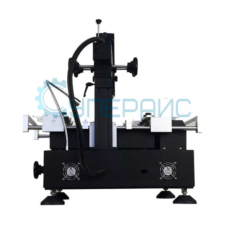 Цифровая паяльная станция Dinghua с потребляемой мощностью до 4800 Ватт. Минимальный размер BGA чипов составляет 2 миллиметра, а максимальный – 80 миллиметров. Оба нагревателя термовоздушные (верхний и нижний), сам преднагреватель имеет инфракрасный элемент нагревателя.