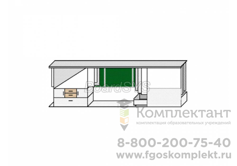 Комплектация изделия: Картотека 6-30 (система для хранения и демонстрации плакатного материала до 60 мм); Доска 100х140 текстильная (для проецирования изображений) илимагнитно-маркерная доска; Фальшпанель с выкатным ящиком (для дидактических материалов); Комплект аксессуаров; Профиль ПВХ для крепления плакатов 84 м.п.; Крючок-ролик 120 шт. «КАРТОТЕКА 1» используется для хранения и демонстрации плакатных материалов высотой не более 1,5 метров.