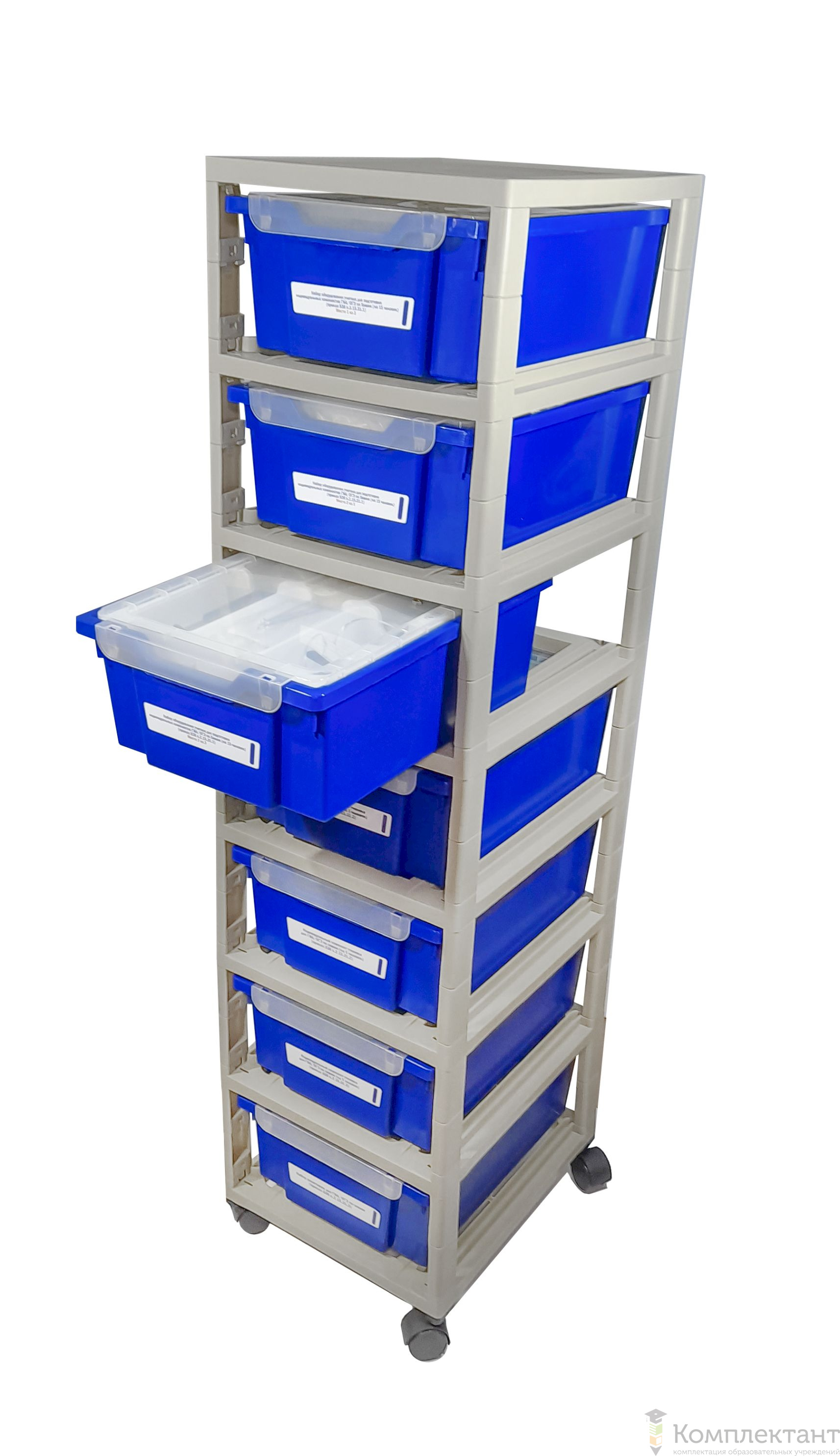 Мобильная стойка для одновременного хранения и транспортировки всех систем хранения тематических наборов приобретается отдельно — 2.15.6. Стойки для хранения ГИА-лабораторий по химии.