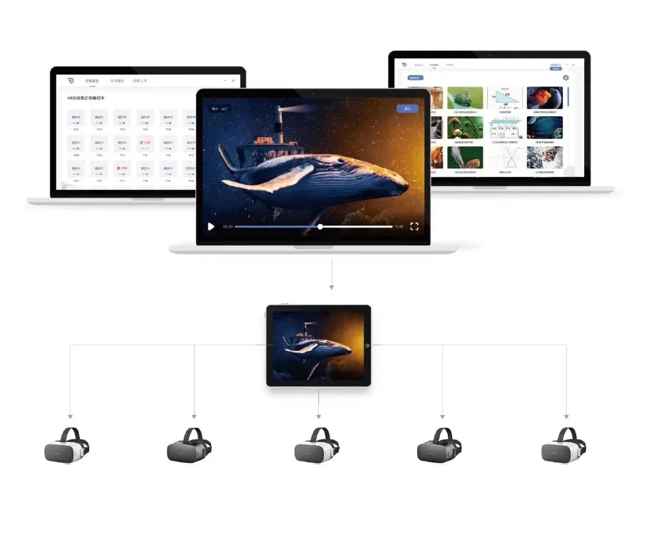 Главное преимущество DPVR P1 PRO – качественная автономная платформа, реализация которой стала возможна, благодаря встроенному процессору XR1. Для погружения в виртуальную реальность не требуется дополнительных устройств, таких как ПК и базовые станции. Разрешение дисплея составляет 2560x1440. Гарнитура функционирует на аккумуляторе 4000 мАч до 5 часов в беспроводном режиме. В комплекте поставляется 3DoF контроллер. В версии DPVR P1 PRO предусмотрено 3 Гб оперативной и 32 Гб встроенной памяти. Если Вам требуется более высокое разрешение, рекомендуем к покупке DPVR P1 PRO 4K. Также можно купить DPVR P1 – более бюджетную модель с меньшим объемом памяти. Беспроводные устройства можно настроить для управления и воспроизведения контента на нескольких гарнитурах одновременно через компьютер или планшет. Это удобное решение для контроля контента на конференциях, учебных заведениях, выставочных залах, групповых турах или корпоративных презентациях. Возможна полная кастомизация дизайна гарнитуры в соответствии с брендом компании.