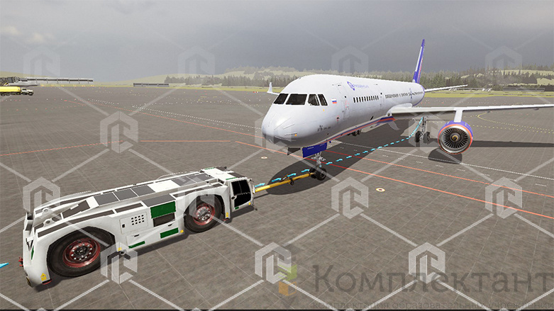 Данный виртуальный тренажер предназначен для отработки навыков по осмотру и обслуживанию самолета ТУ-204/214 и его модификаций. Данный комплекс с помощью детальной трехмерной графики и оборудования для виртуальной реальности должен позволять проводить ряд исследовательских и практических работ, связанных с непосредственным изучением конструкции изучаемого самолета, а также проводить виртуальные работы по обслуживанию воздушного судна в транзитном аэропорту. Комплекс позволяет проводить виртуальные лабораторные работы, в которых проводится встреча и выпуск самолета, а также визуальная проверка внешнего состояния планера и основных узлов самолета, выполняемые перед каждым вылетом воздушного судна. Программный комплекс позволяет с помощью трехмерных моделей самолета и основных средств наземного обслуживания, инструментов и оснастки провести изучение процесса проведения технологических операций, выполняемых при проведении оперативного ТО воздушного судна в транзитном аэропорту. В ПО реализована система проверки знаний обучаемого перед работой, а также система отчетов о проделанных работах в режиме обучения и экзамена.