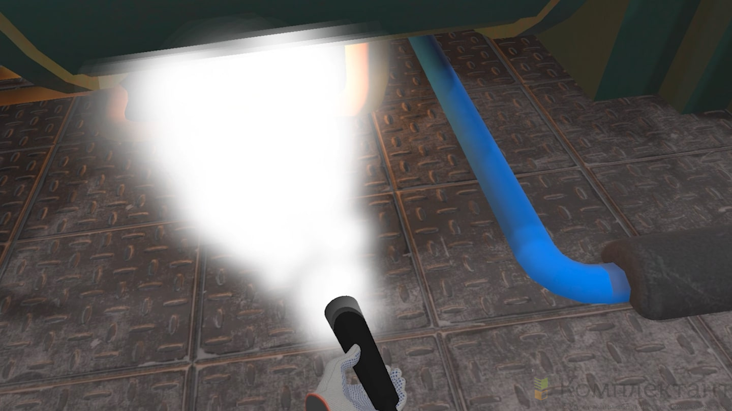 Виртуальный (VR) тренажер «Пожарная безопасность в цеху» воссоздает ситуацию возгорания в рабочем ангаре. Пользователю в процессе тренировки необходимо прекратить работу, вызвать пожарную охрану и, согласно плану, провести эвакуацию из ангара, а также применить огнетушитель.