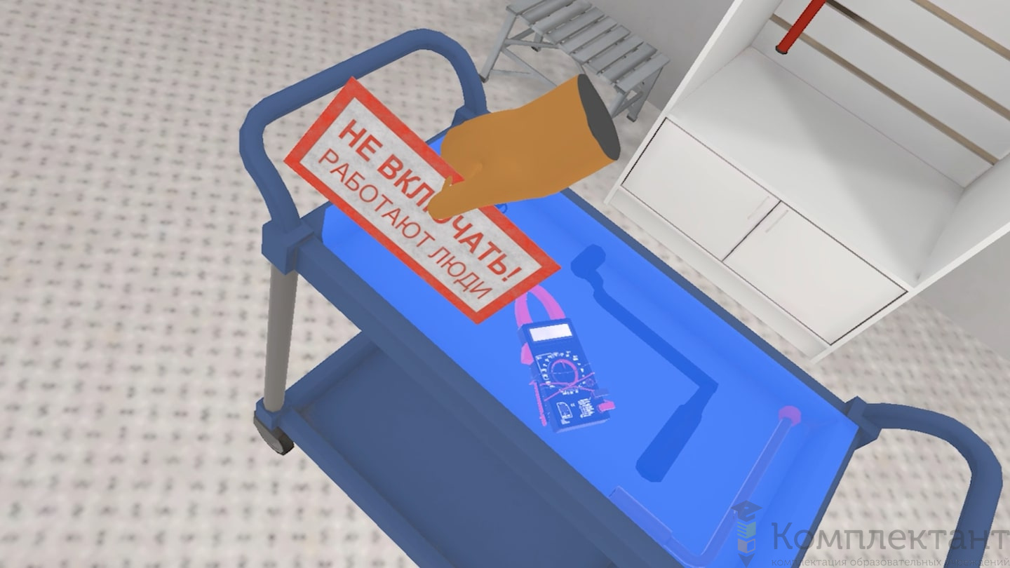 Виртуальный (VR) тренажер «Электробезопасность 2-4 группы» позволяет пользователю подготовиться к отключению ячейки КРУ и всем необходимым этапам проведения работ. В состав тренировки пользователя входят: