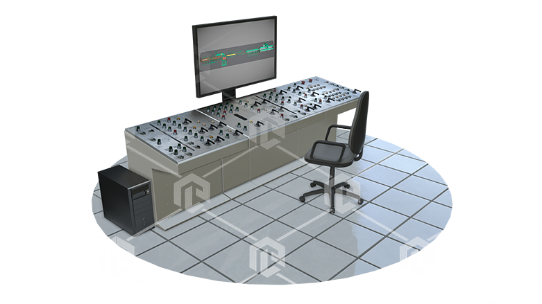 Тренажерный комплекс представлен аналогом реального пульта управления оборудованием с интегрированной виртуальной моделью. Обеспечивает изучение работы линии циркуляции оправок, изучение требуемых технологических операций и получение навыков работы на линии циркуляции оправок, моделирование и отработка различных типовых сценариев эксплуатации оборудования.