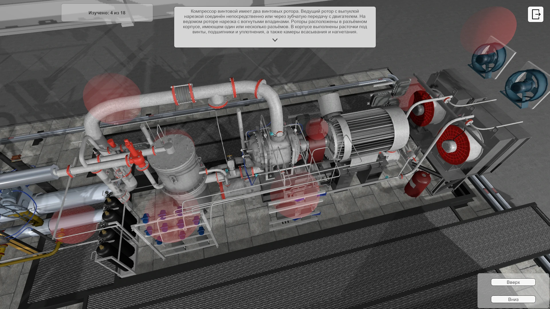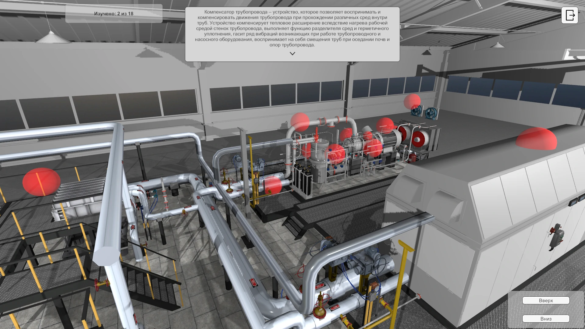 Тренажер позволяет имитировать работу и управление одноцеховой газокомпрессорной станцией.