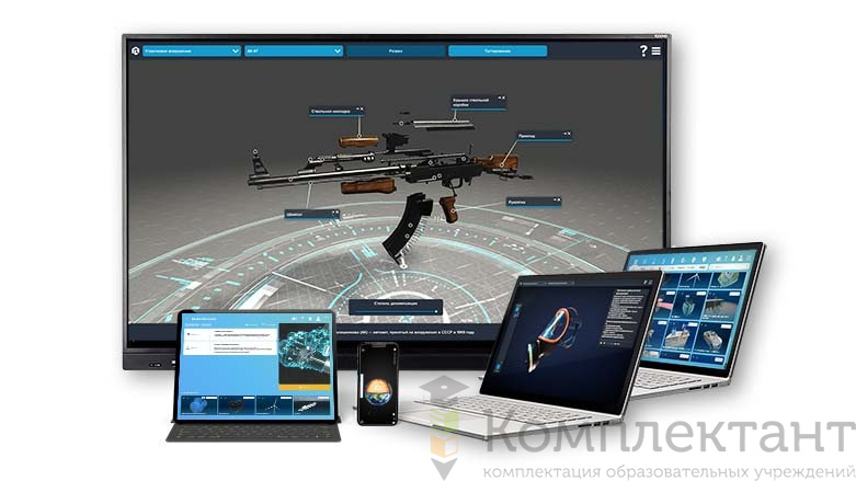 Наглядное 3D пособие ориентировано на школьную программу и может легко запускаться на интерактивных сенсорных панелях. Учебные виртуальные сцены направлены на изучение основных школьных направлении, таких как физика, химия, биология, география, окружающий мир, технологии.