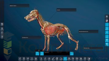 Виртуальный учебный комплекс предназначен для подробного изучения анатомии собаки с помощью трёхмерной графики и анимации, а также комплектов виртуальной реальности.