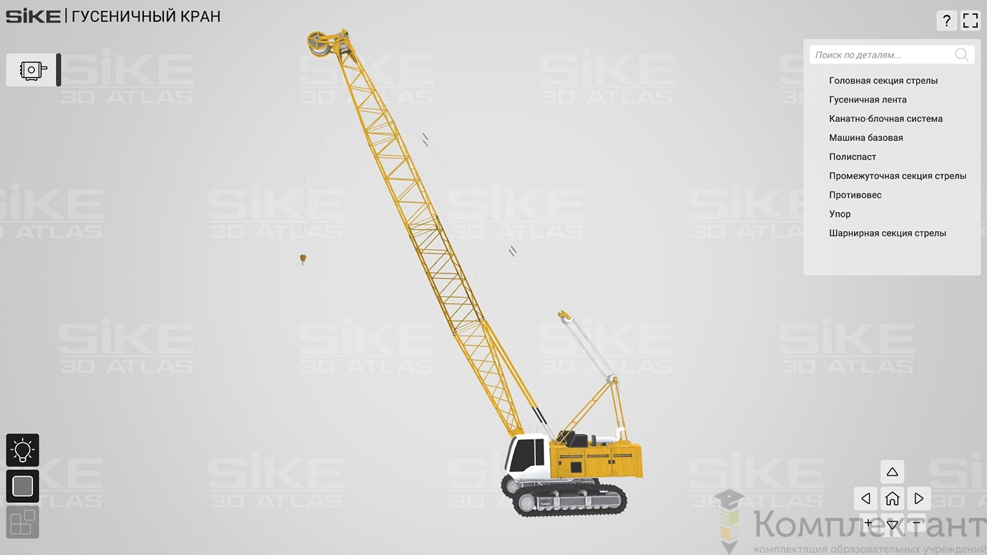 3D Атлас «Устройство грузоподъемных механизмов» дает возможность пользователю детально изучить устройства оборудования на базе реалистичных 3D моделей. В основе изучения интерактивные 3D модели реального производственного оборудования. В режиме «обучение» пользователь может вращать модель, скрывать отдельные детали, изучать внутреннее устройство, описание и назначение деталей. В режиме «тестирование» пользователь может проверить свой уровень знаний по конструкции оборудования.