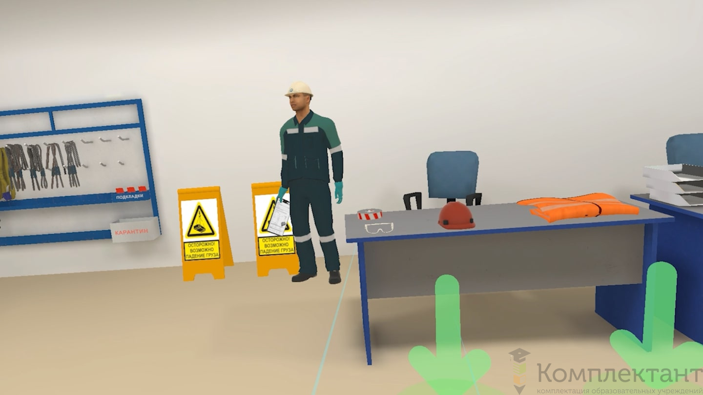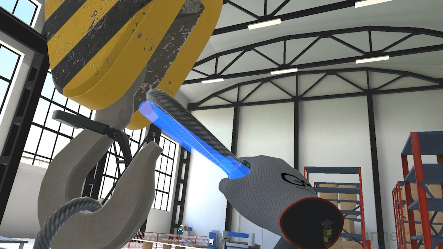 Виртуальный (VR) тренажер «Строповка грузов» воссоздает ситуацию строповки груза в ангаре. Тренажер позволяет отрабатывать действия, направленные на перемещение груза из одного места в другое с использованием необходимых устройств и инструментов. Пользователь обучается самостоятельно подбирать вид строповки в зависимости от технологической карты, закреплять груз стропами, совершать первоначальный подъём и с помощью пульта перемещать груз по ангару.